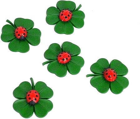 Erro - Set di 5 trifoglio con coccinella, circa 3 cm, in plastica, portafortuna, quadrifoglio portafortuna con coccinella, decorazione per il fai da te: Amazon.it: Casa e cucina