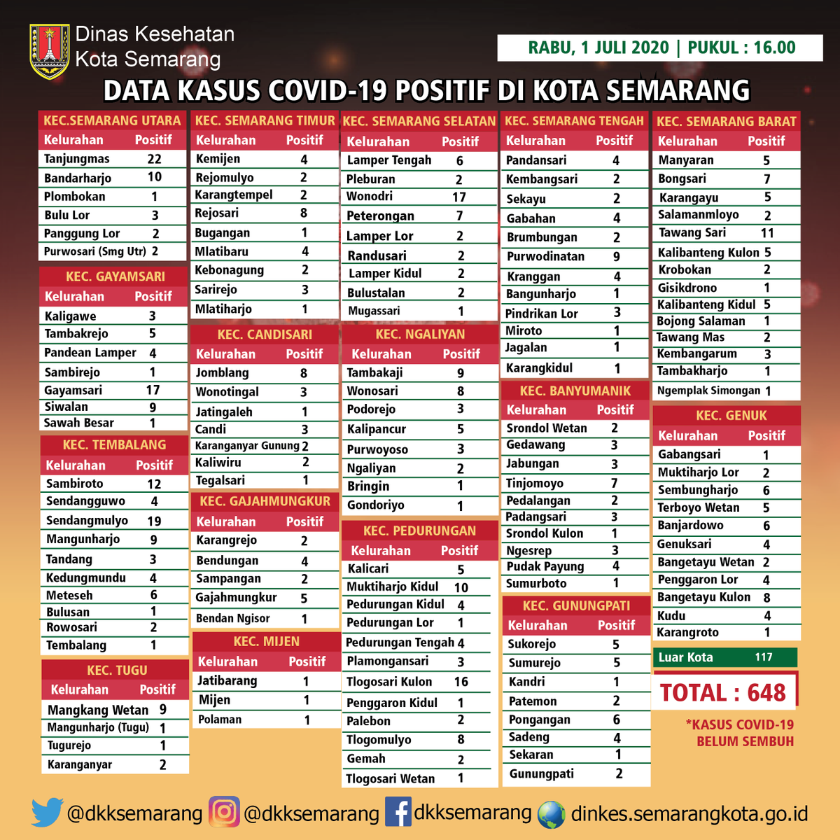 Dinkes Kota Semarang On Twitter Update Kasus Covid 19 Di Semarang Data Cut Off Rabu 01 07 2020 Pukul 16 00 Wib Salamsemarangsehat Dkksemarang Dinkeskotasemarang Semaranglawancorona Https T Co 5vylkdmhcf