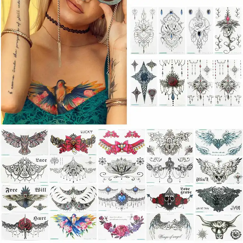 Femmes Bijoux Sternum Tatouage Temporaire Sein Corps Dos Mandala Mehndi Henne Tatouage Autocollant Tour De Cou Pendentif Sous Poitrine Tatoo Aliexpress